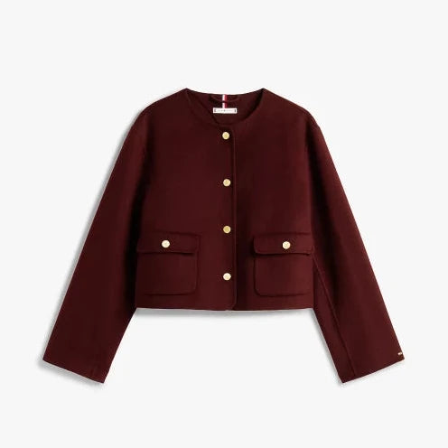 Tommy Hilfiger Wool Blend Short Jacket - Burgundy