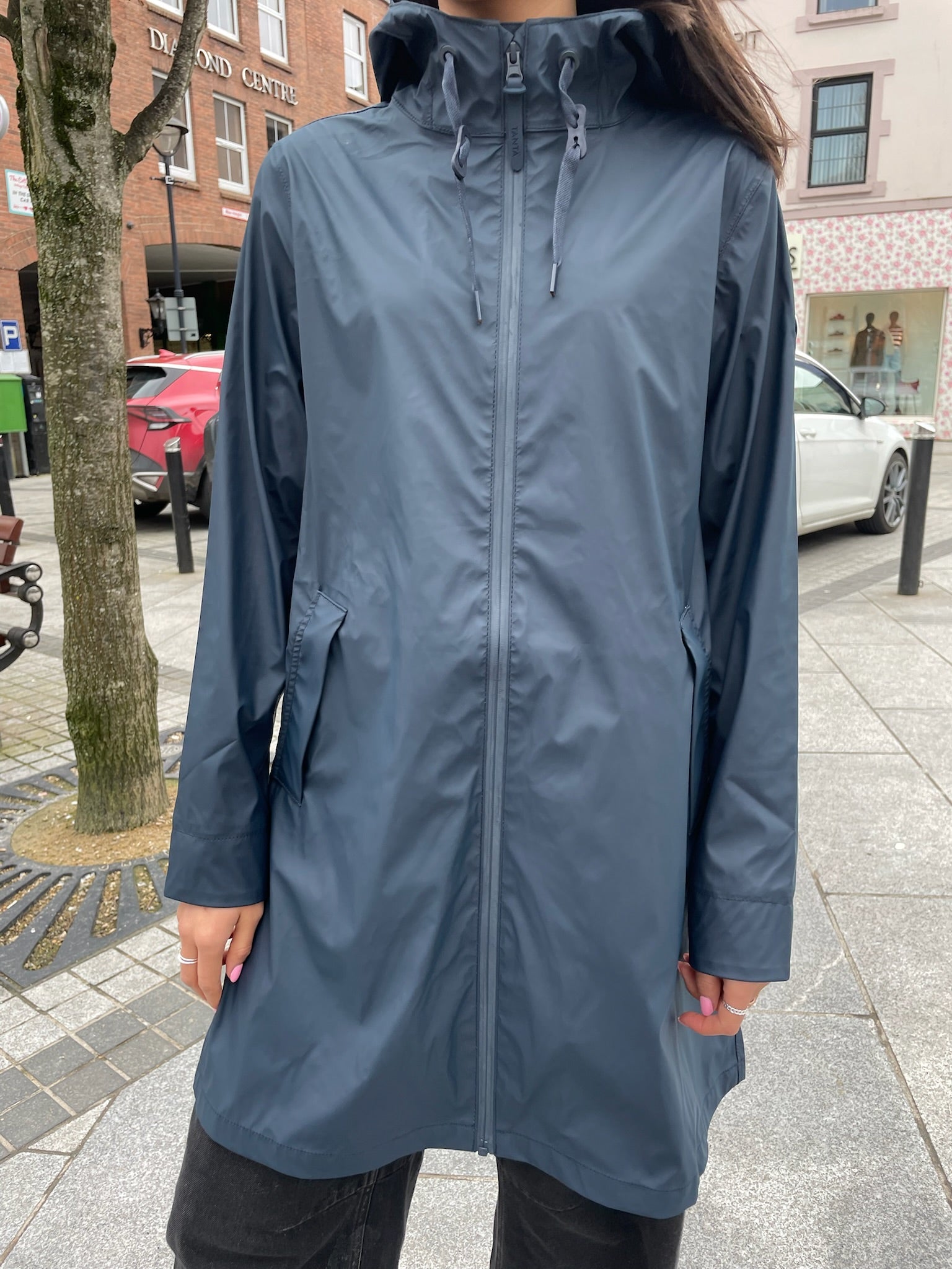The Tantä Rainwear NUOVOLA Navy coat is designed for optimal protection against the elements, featuring a water and windproof construction that ensures dryness and comfort. Lightweight tape seams enhance durability while maintaining breathability. Made from vegan materials, this coat is a sustainable choice for environmentally conscious consumers.