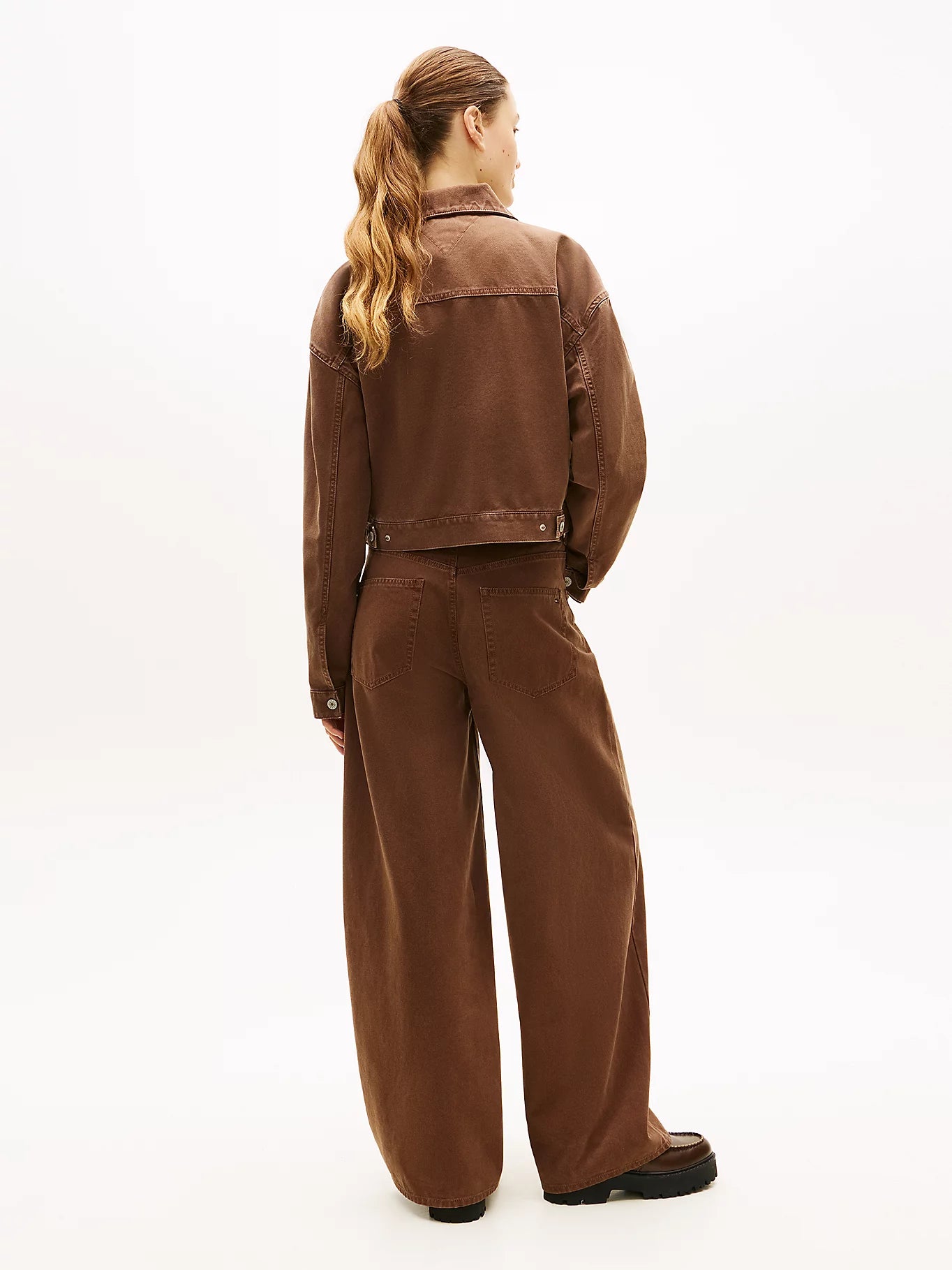 The Tommy Jeans Washed Canvas Oversized Trucker Jacket features a pure cotton composition, offering durability and comfort. Its garment-dyed finish ensures a vintage aesthetic, while the oversized silhouette provides ease of movement. This combination makes it an ideal choice for casual layering, enhancing style without sacrificing functionality.