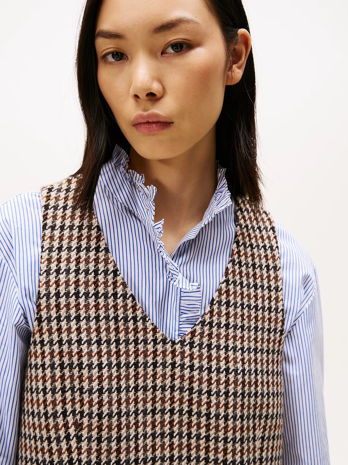 Elevate your wardrobe with the Tommy Hilfiger Heritage Mini Dress. Made with premium pure wool, this sleeveless V-neck shift dress boasts a timeless all-over check design. With a zip closure and two front welt pockets, it's both stylish and practical. Finished with Tommy Hilfiger branding and a metal flag on the hem, it's a must-have for any fashion-forward individual.