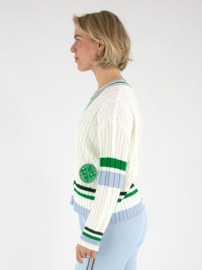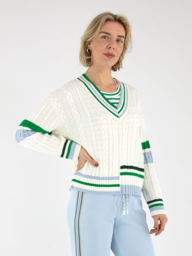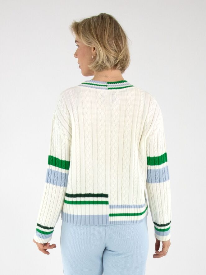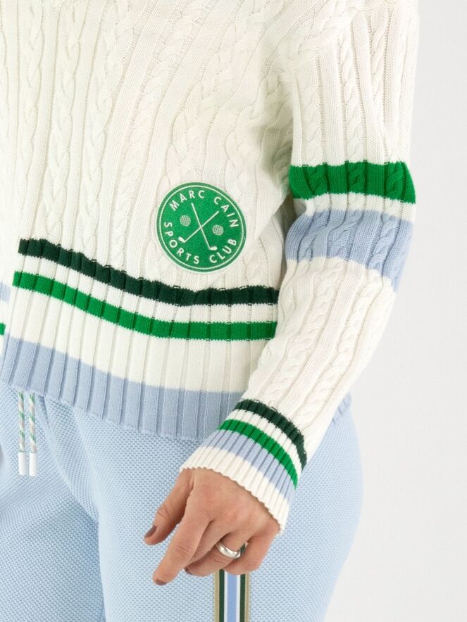 The Marc Cain sweater features high-quality craftsmanship, ensuring durability and comfort. Designed with a tailored fit, it provides both style and functionality, making it suitable for various occasions. The fabric composition supports breathability, maintaining optimal temperature regulation. This sweater is an excellent addition to any wardrobe, combining elegance with practicality.