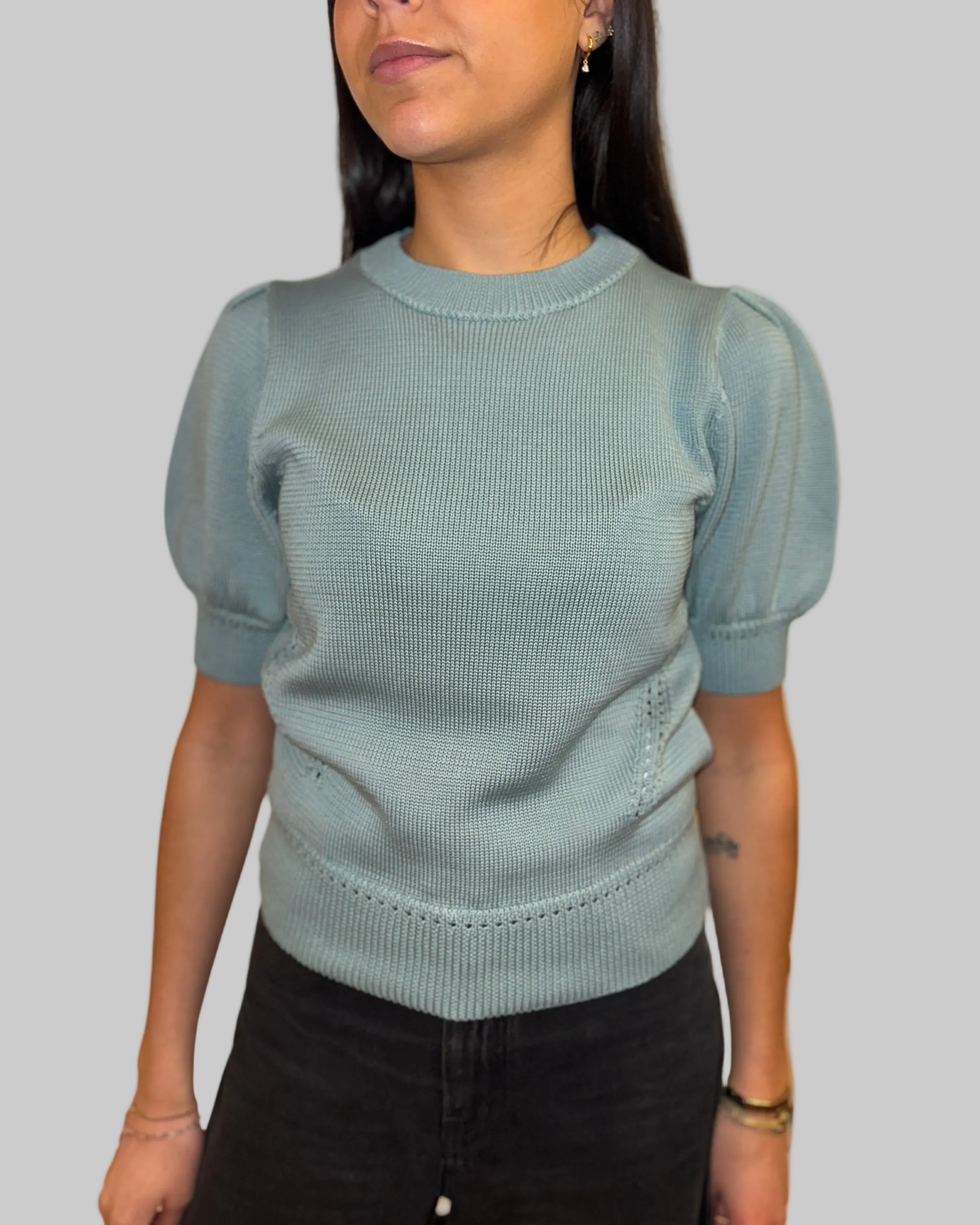 Elevate your wardrobe with our Marella Puff Sleeve Top. This teal blue top features elegant puff sleeves for a sophisticated touch. Made with high-quality materials, this top offers both comfort and style. Perfect for any occasion, this top adds a pop of color to any outfit.