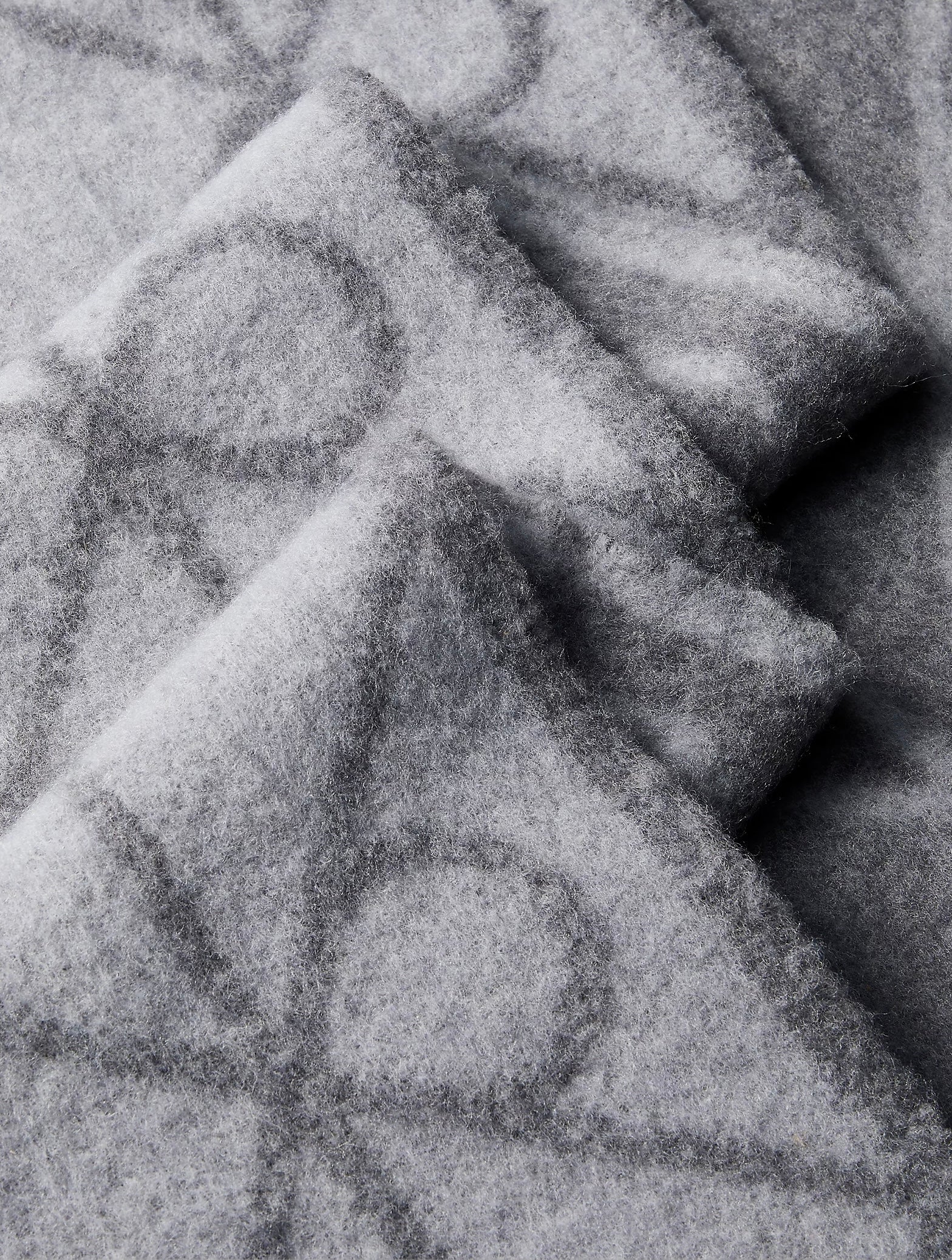 Expertly crafted from a heavyweight wool blend, this Calvin Klein scarf is perfect for cooler weather. Its soft brushed feel and fringed trims offer both warmth and style, while showcasing the brand's signature emblem logo pattern. A must-have for any fashion-forward individual.
