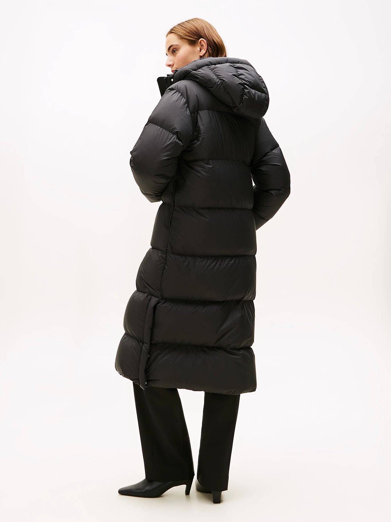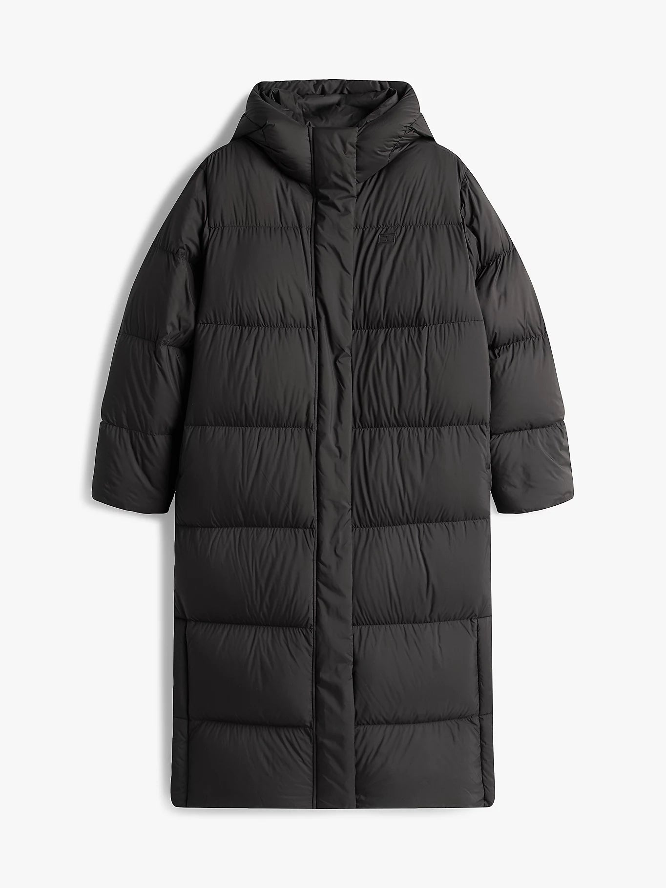 Experience ultimate warmth and protection with our Tommy Hilfiger Hooded Down LongLine Coat. This stylish puffer coat features a water-repellent finish and down filling for added insulation. The longline design and non-removable hood provide extra coverage. Completed with our iconic tonal flag embroidery and branding, this coat is both functional and fashionable. Stay cozy and fashionable this winter season.