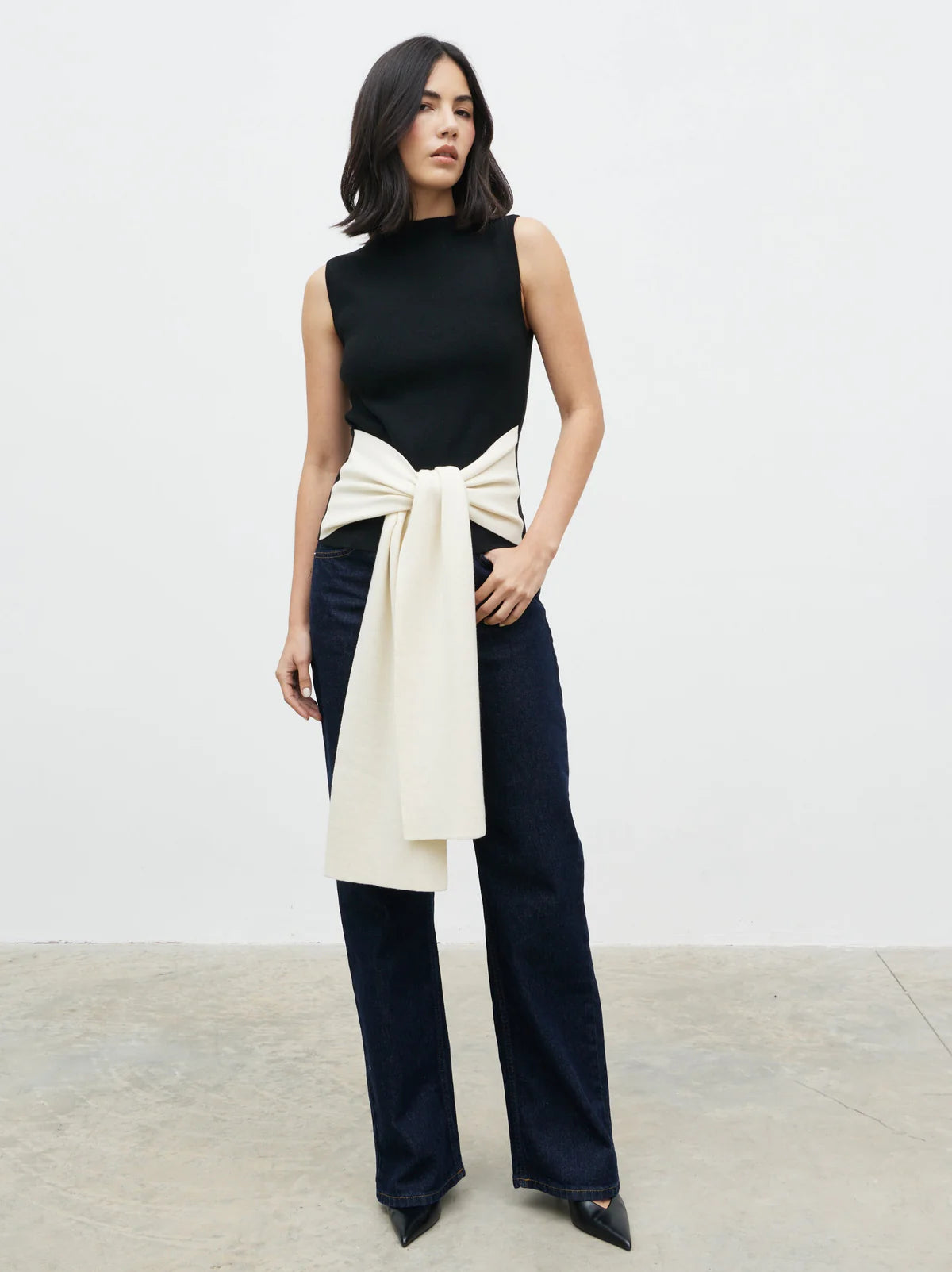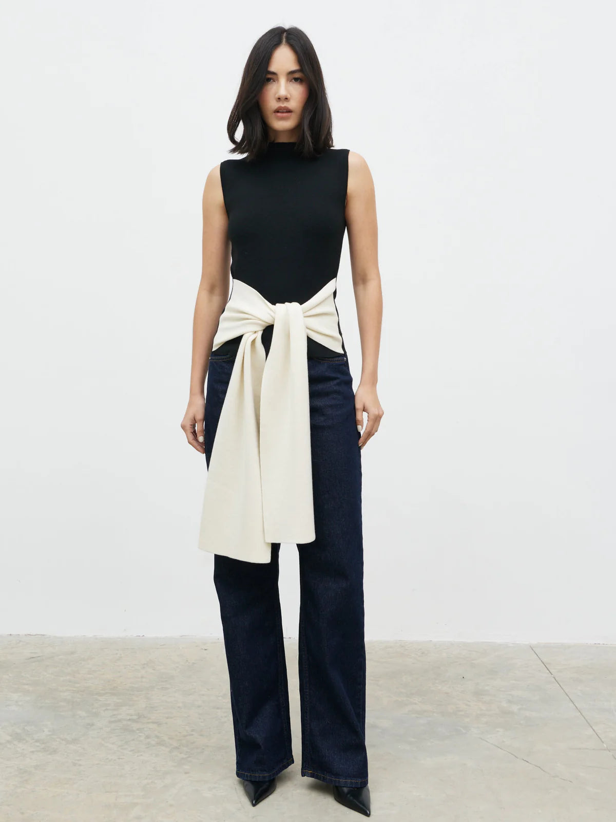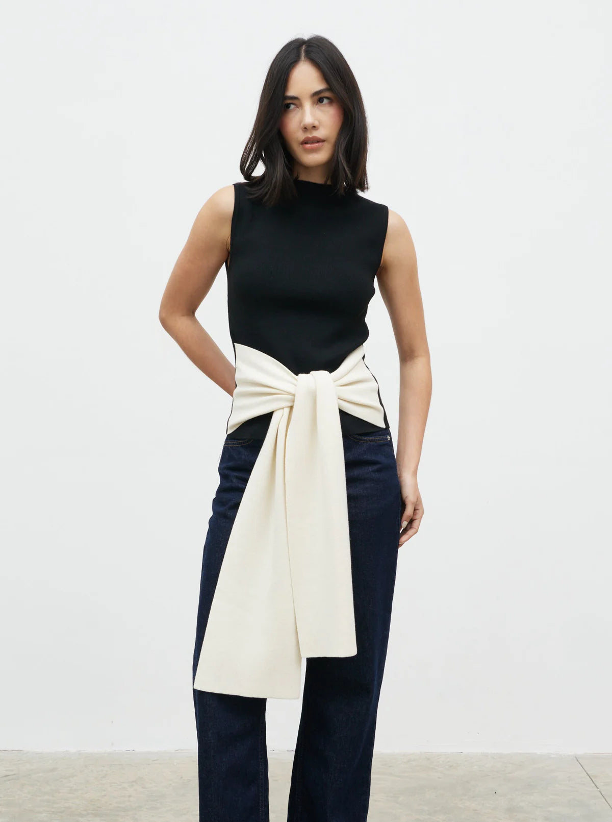 This Pretty Lavish Audrey Waist Tie Sleeveless Knit Top is perfect for any occasion. Its sleeveless design and high neckline add a touch of elegance, while the contrast waist tie detail and statement wrap front provide a flattering fit. Made with a soft and stretchy rib knit, this top offers both style and comfort.