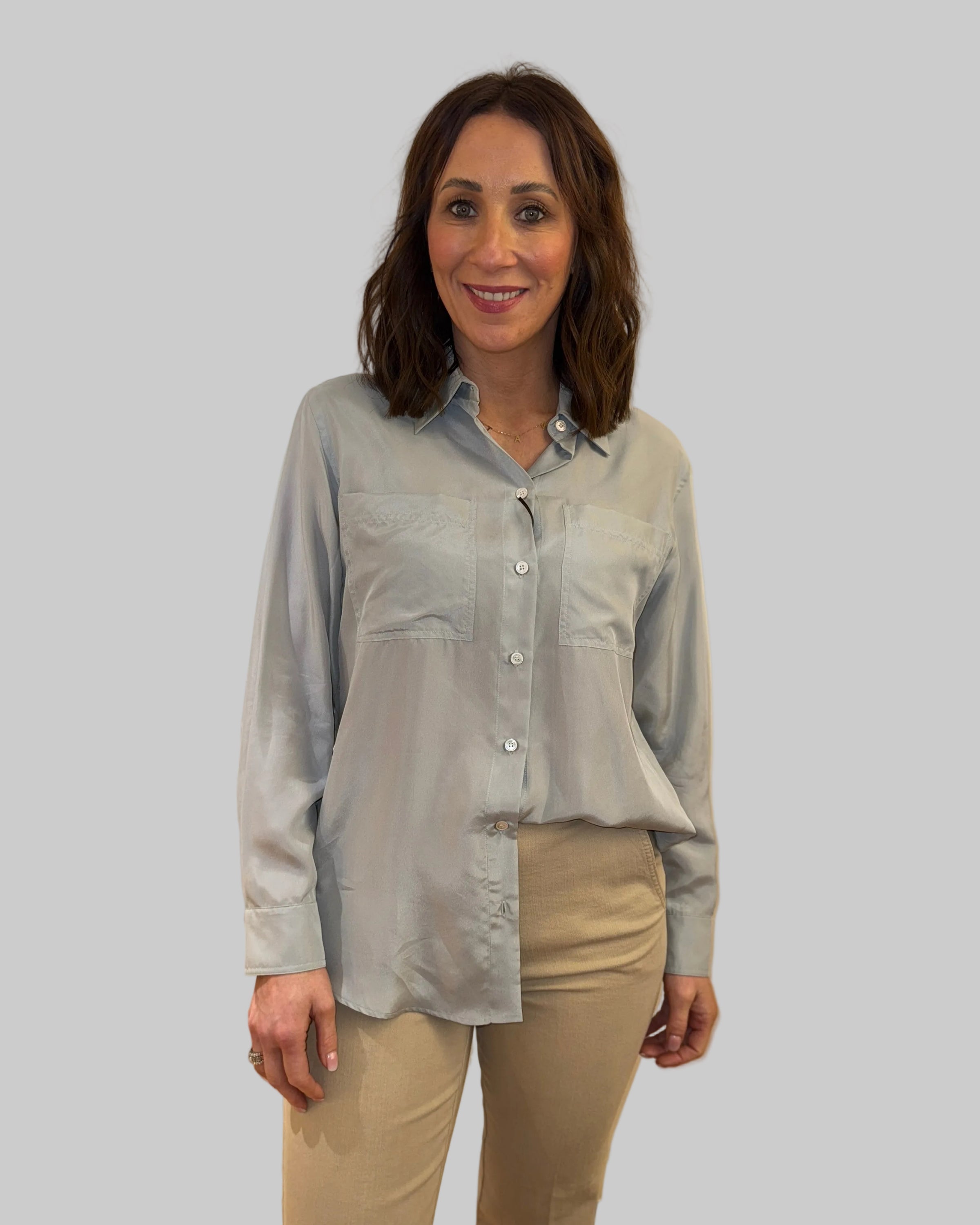 Upgrade your wardrobe with the Marella Blue Shirt. Crafted from soft, high-quality fabric, this shirt features a sharp collar and double pockets with a button closure. Stay stylish and comfortable all day long. Get yours now!