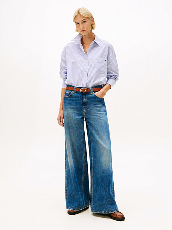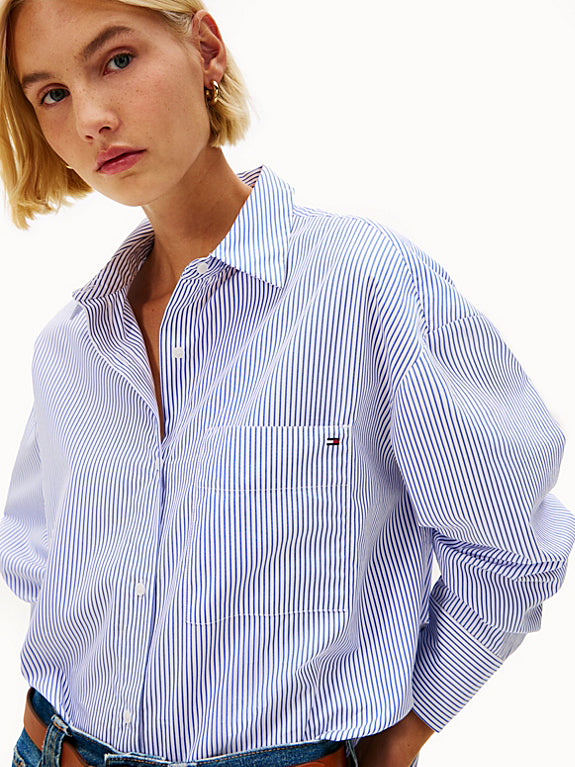 This crisp cotton poplin shirt features a relaxed silhouette that's complemented by a rounded hem and wide sleeves for laid-back chic.
