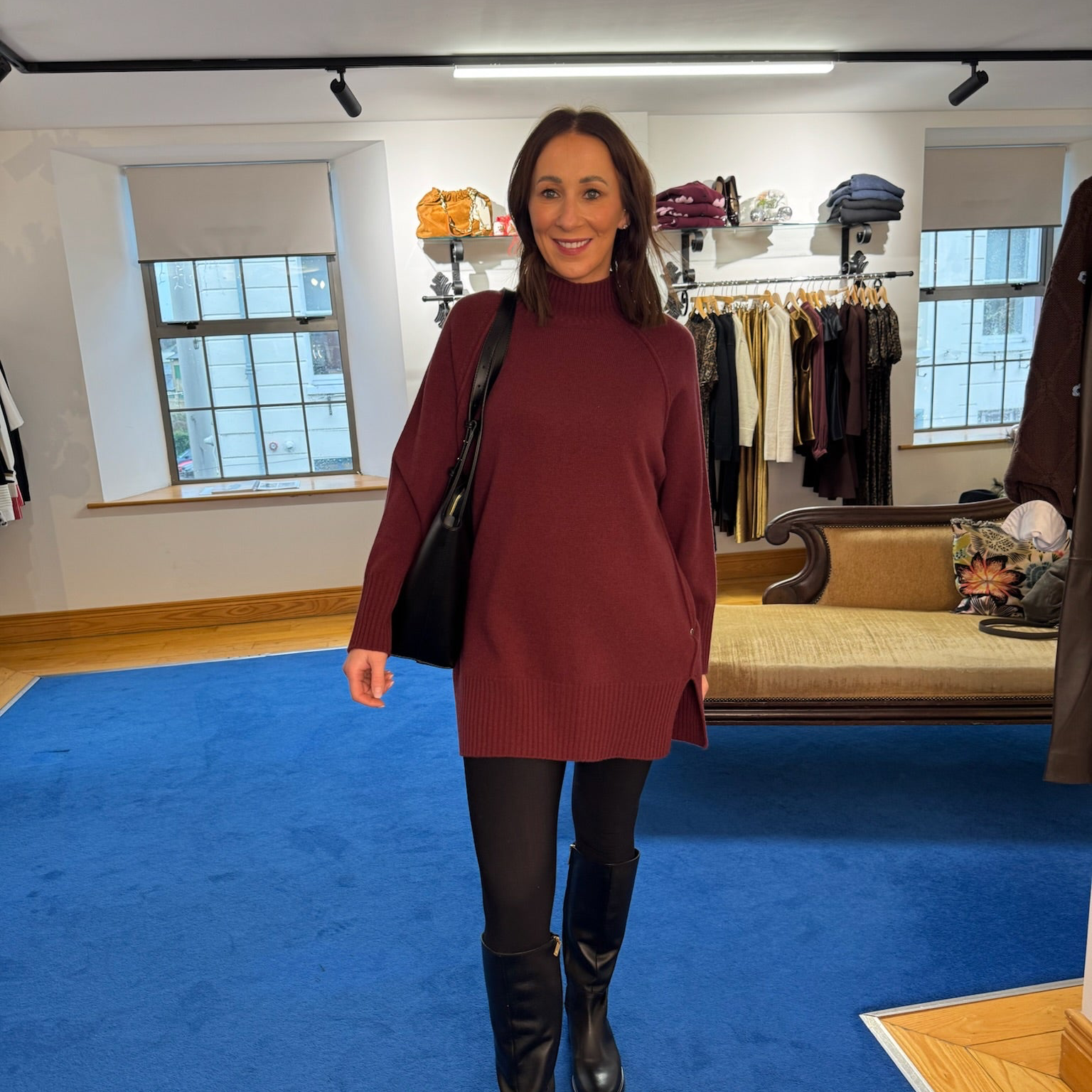Made of high-quality wool, the Marella Maroon Wool Sweater is the perfect blend of comfort and style. With a chic high neck design, this maroon long sweater will elevate any outfit while keeping you warm. Expertly crafted, it offers both durability and luxury for a timeless addition to your wardrobe.