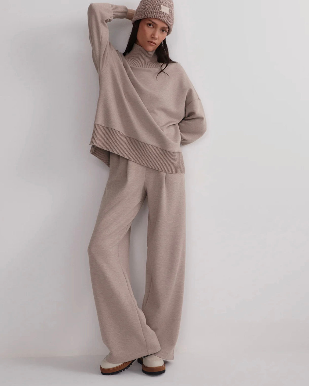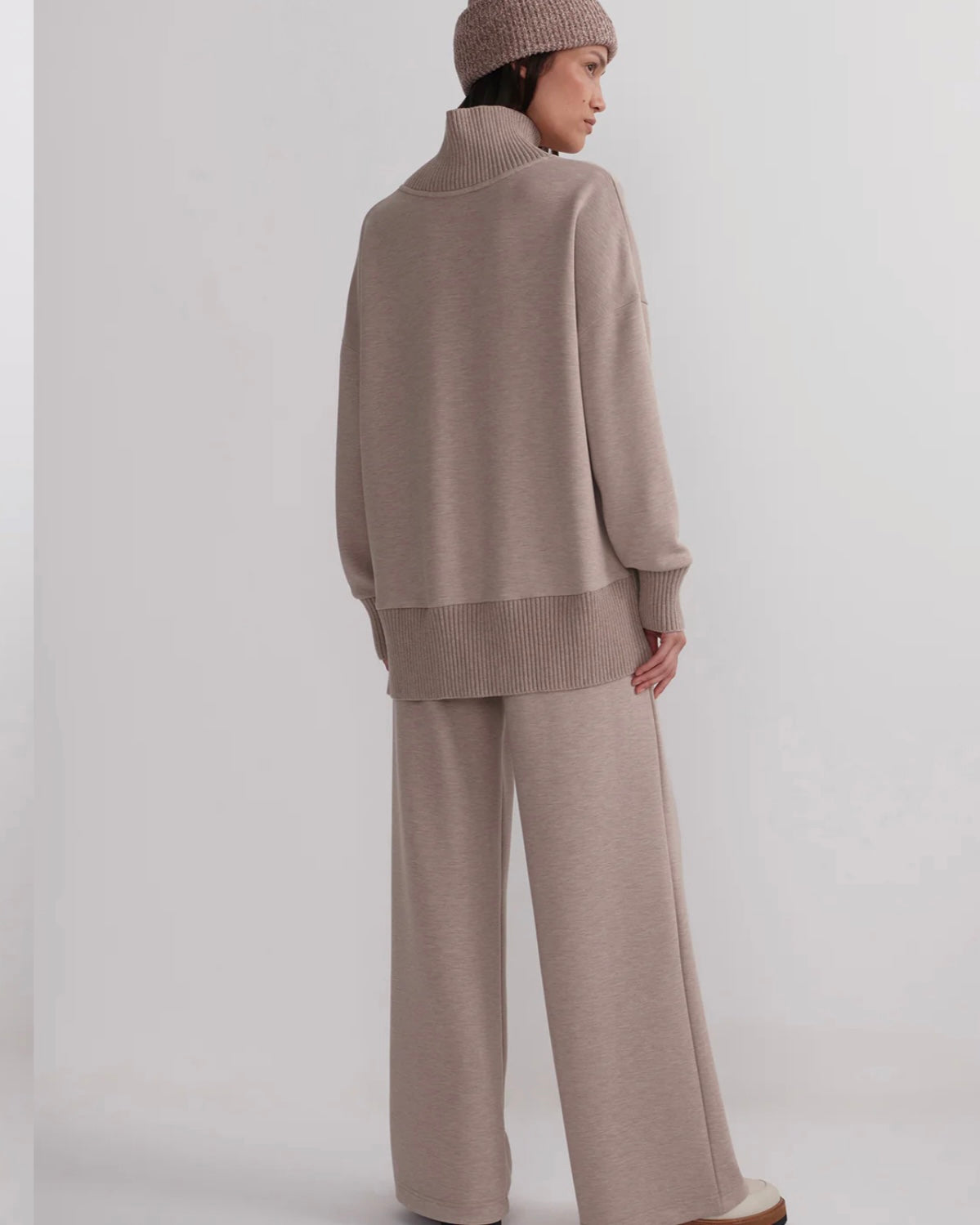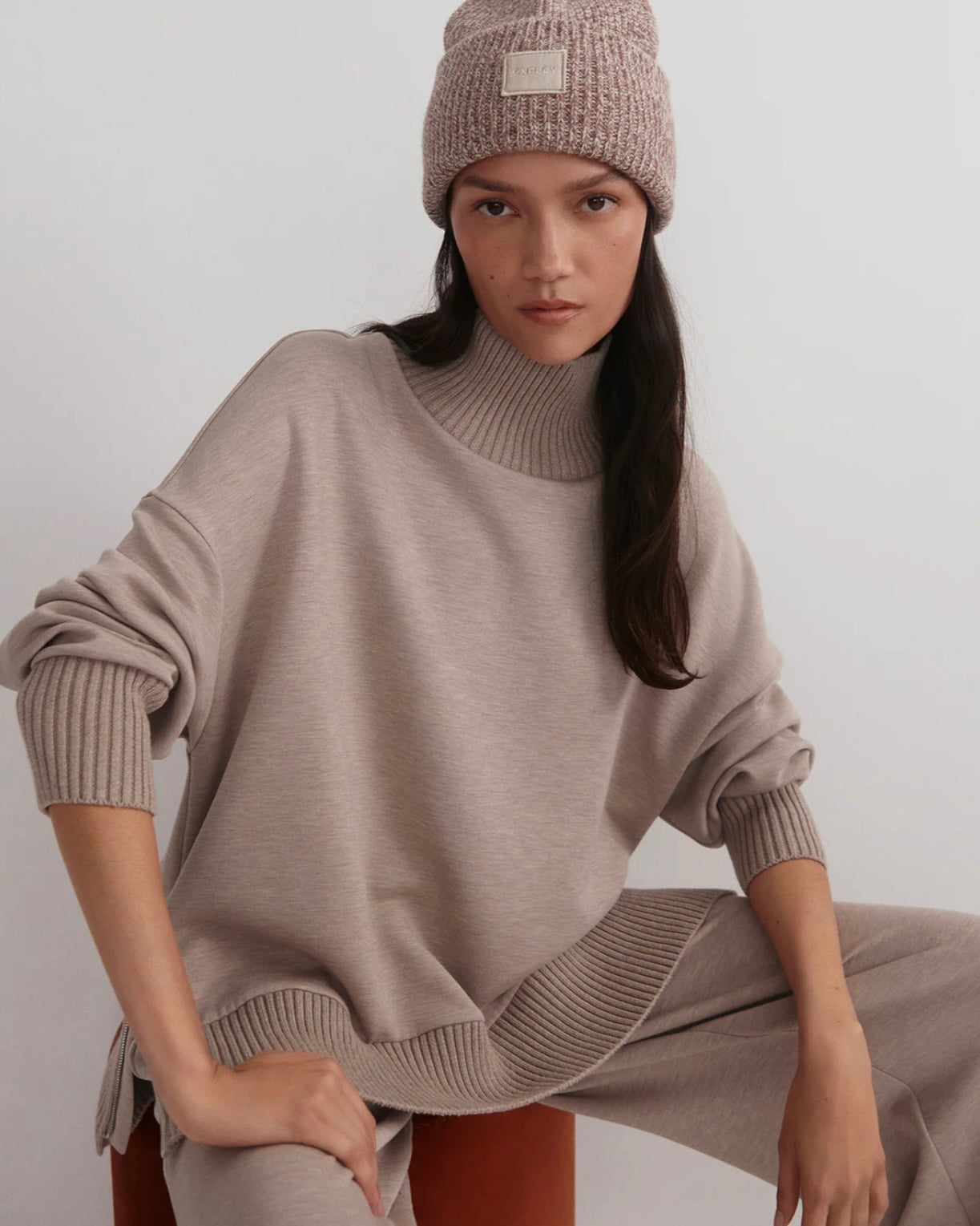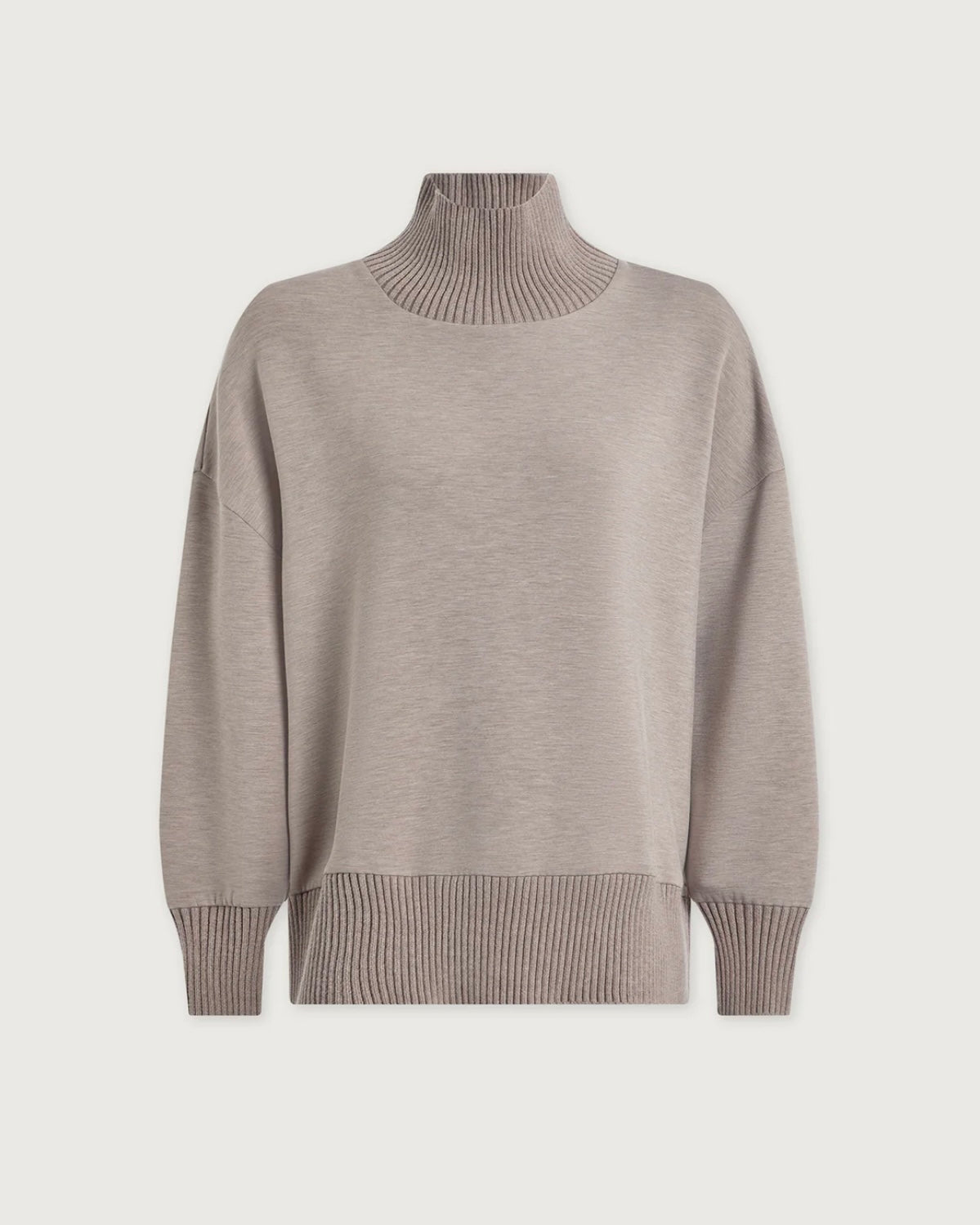 This essential sweatshirt in our DoubleSoft® fabric boasts an oversized fit and modern high-neck design. Complete with knitted cuffs, neck, and hem, it includes deep side splits for enhanced movement and style.