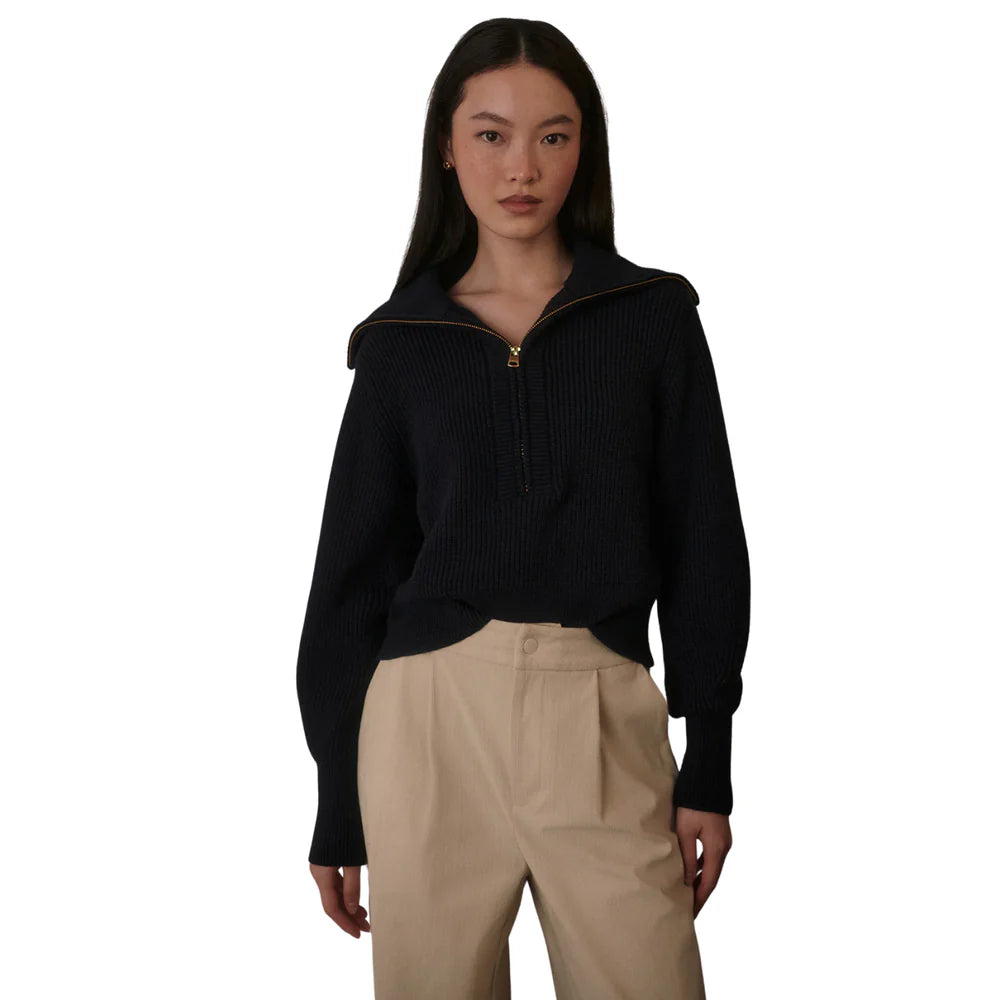 A versatile knit for all-season layering, the Maura is a contemporary half-zip style made to elevate your cold-weather looks. A sweater version of the Enrico jacket, it is crafted from a mid-gauge Soft Viscose yarn, which makes it soft to the touch and super comfortable to wear all day. Complete with a classic turn-back collar and fashioned detailing to the arms.