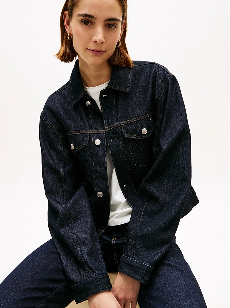 The Tommy Hilfiger Flag Embroidery Pleated Denim Jacket features precision flag embroidery that enhances its aesthetic appeal. The pleated design offers a tailored fit, ensuring comfort while maintaining a fashionable silhouette. Constructed from durable denim, this jacket provides long-lasting wear, making it a practical addition to any wardrobe.