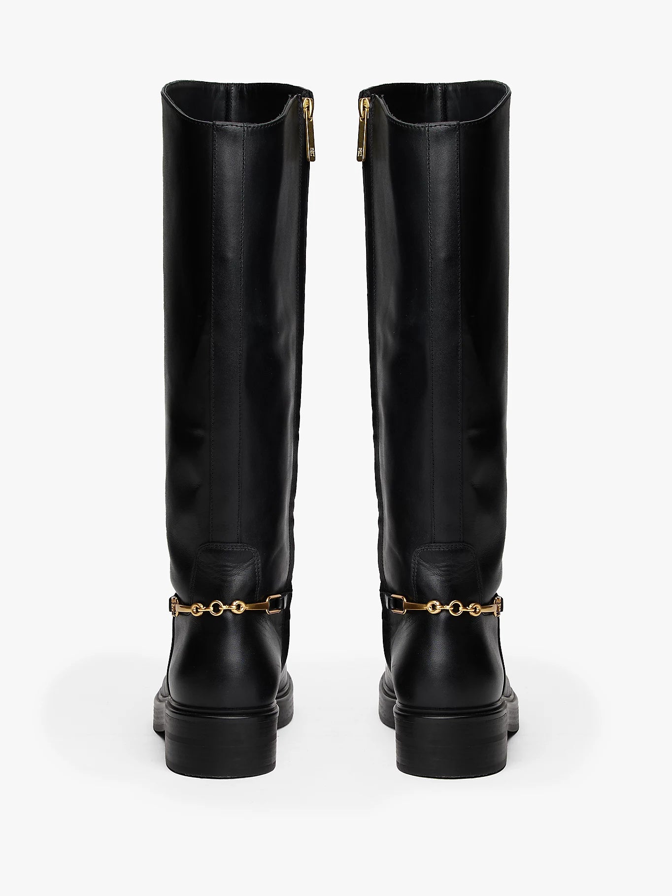 Bring equestrian style to your ensembles with these sleek leather riding boots, featuring zip closures and a luxe TH horsebit hardware.