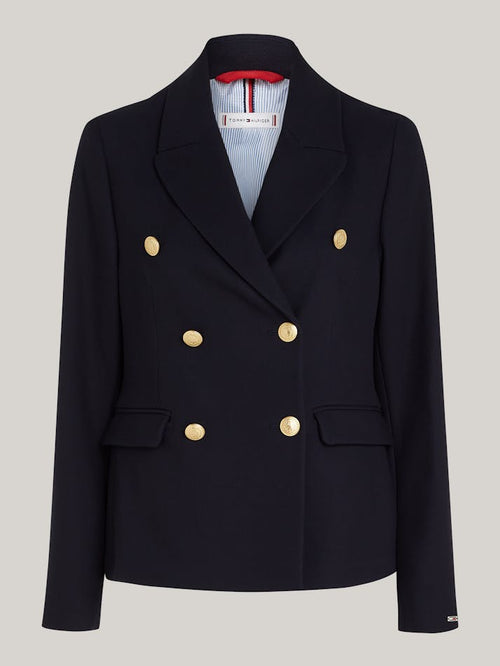 Tommy Hilfiger Gold Button Pique Double Breasted Blazer - Navy