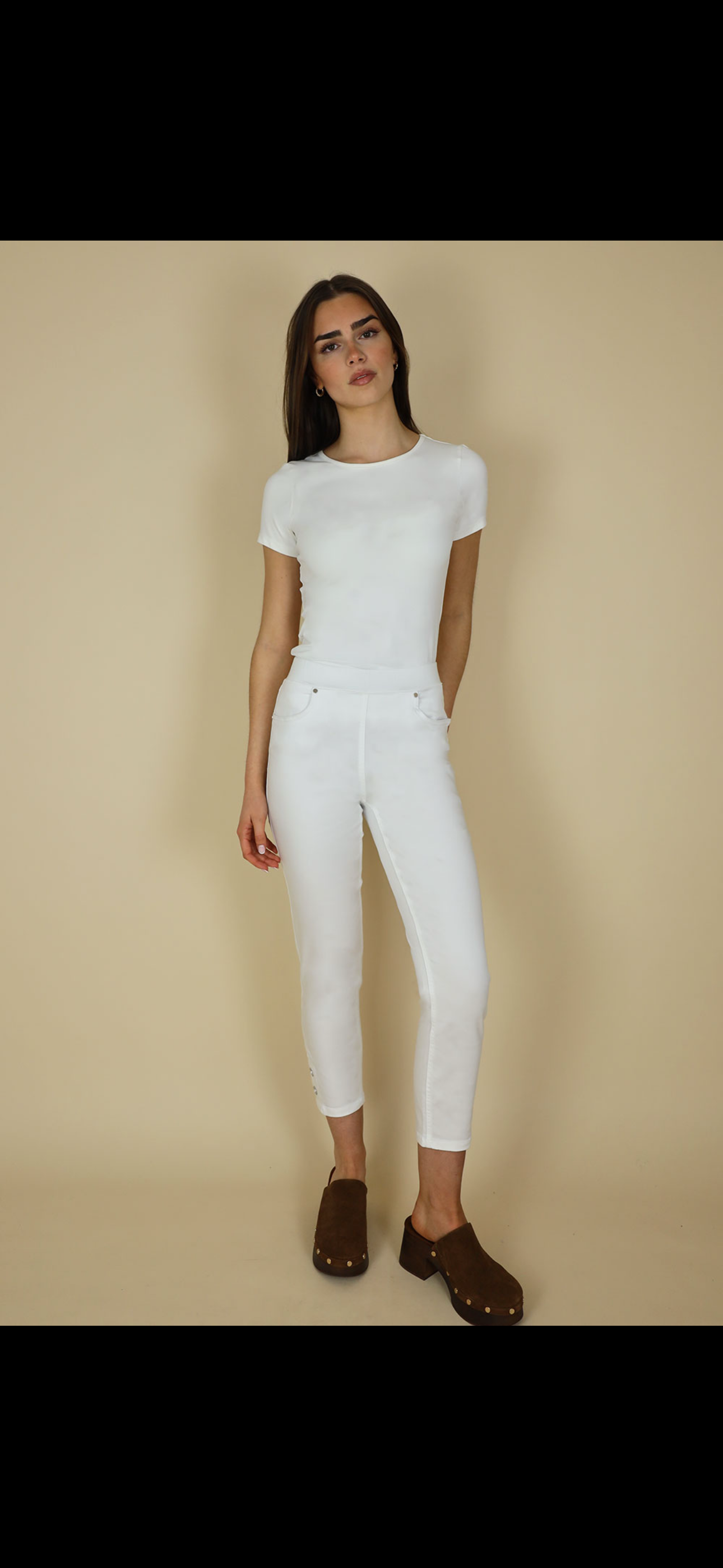 Meet our best-selling Unity trousers. If you prioritize comfort, you’ll like these trousers. What makes this straight-leg trouser so popular is the soft, stretchy, breathable cotton Tencel fabric. These 3/4 trousers hold their shape well and they are the most comfortable trousers you’ll ever wear. They have five-pocket styling, zip front, belt loops, and silver button closure.