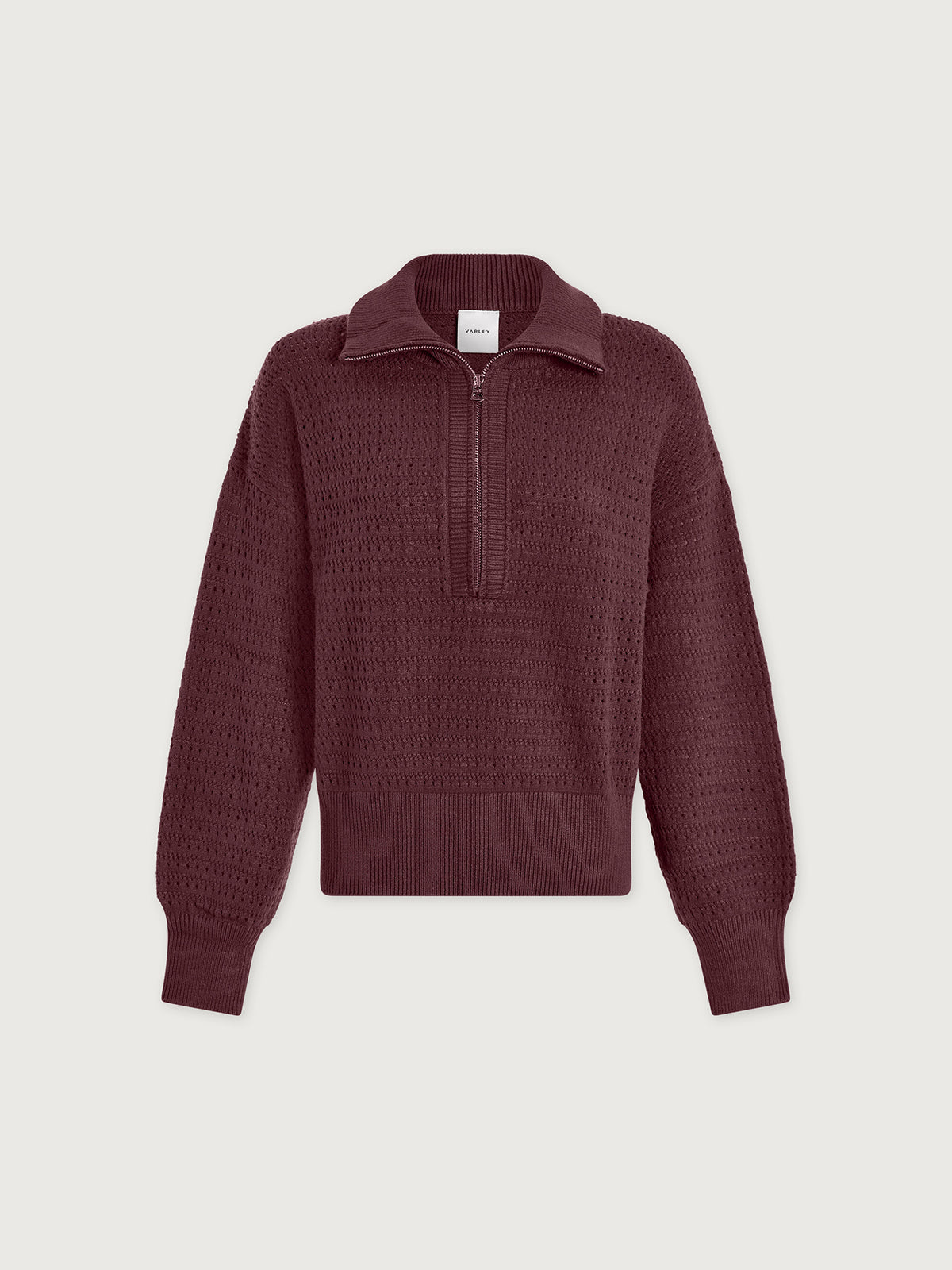The Varley Darla half zip knit combines textured fabric for an elevated aesthetic with a super soft feel. Its half-zip closure allows for adjustable ventilation, while the exaggerated neckline and ribbed trims enhance structure and style, making it a versatile addition to any wardrobe.