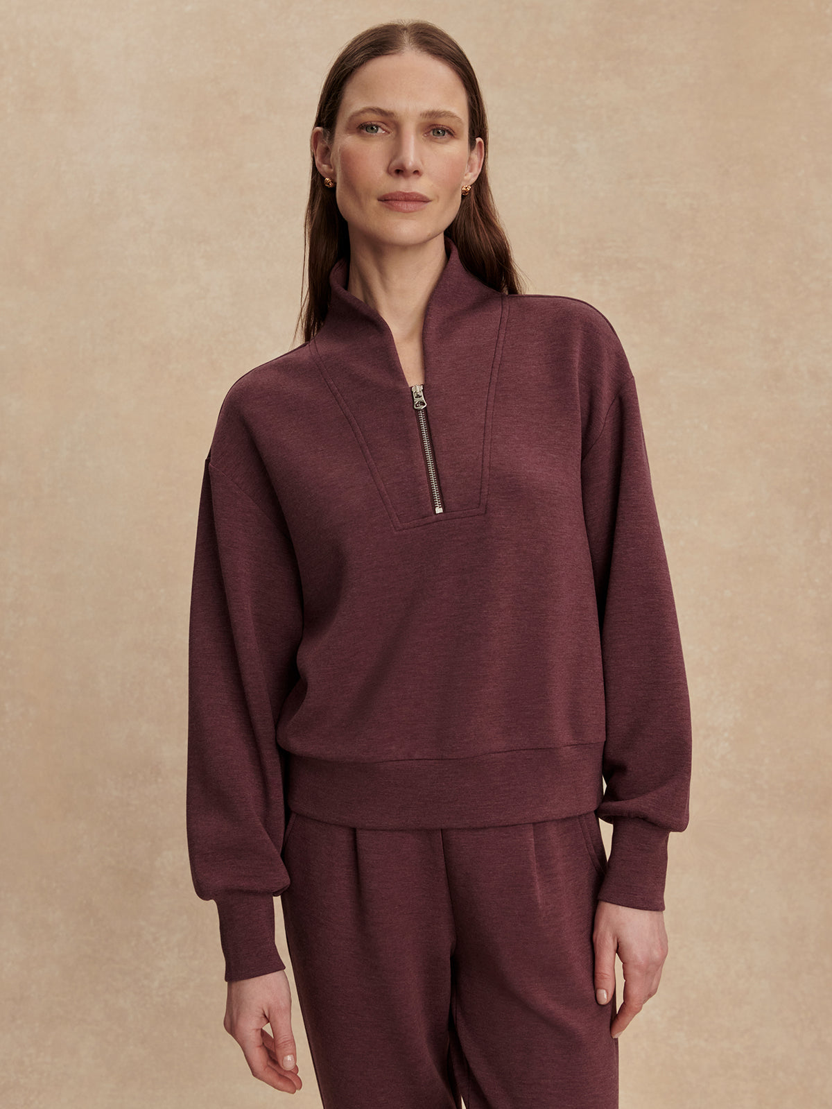 The Varley Davidson Sweat half zip combines functionality with style, featuring a subtly cropped design for versatile layering. Constructed from lightweight DoubleSoft® fabric, it offers breathability and comfort, while dropped shoulders and deep cuffs enhance the relaxed fit. Ideal for pairing with matching sweatpants, it is a practical choice for modern wardrobes.