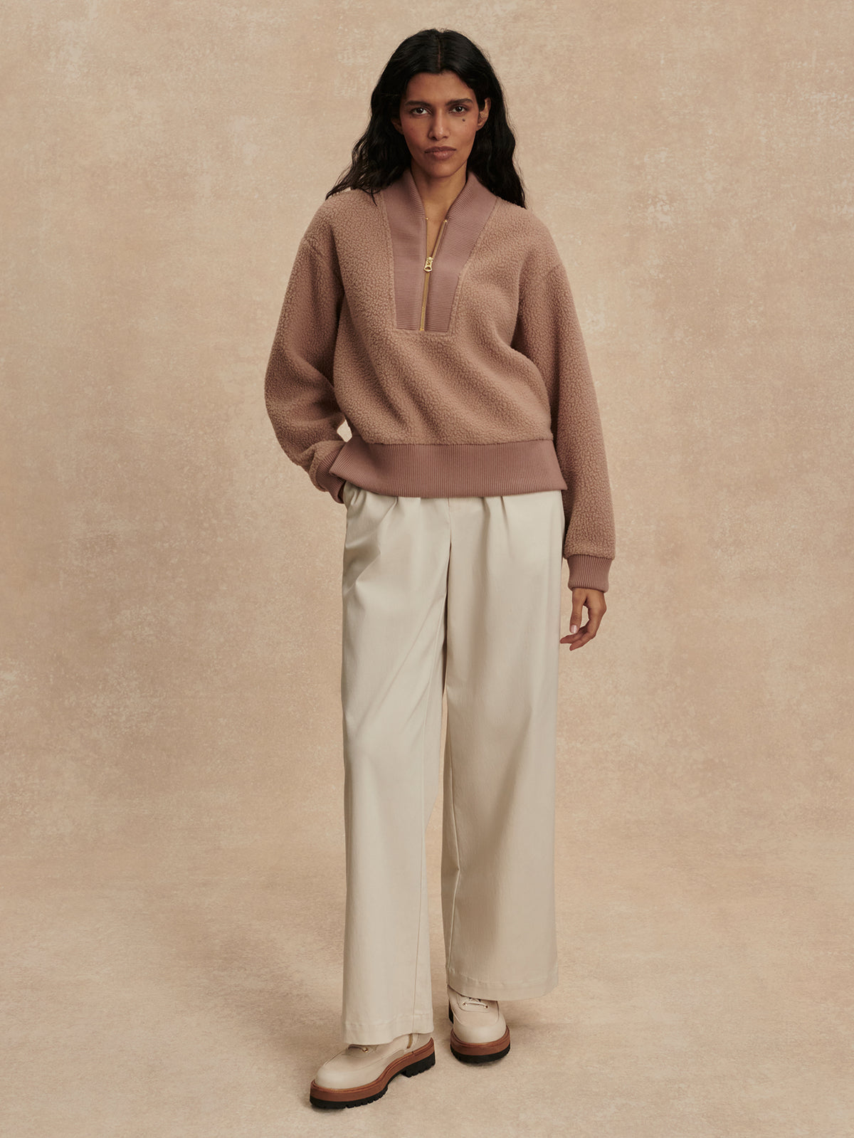 The Varley Mumford Half Zip Fleece is crafted from Plush Borg Fleece, providing superior warmth and softness. Its relaxed fit and contemporary neckline ensure comfort, while the ribbed hem and cuffs enhance durability. This design combines functionality with modern aesthetics, making it ideal for seasonal layering.