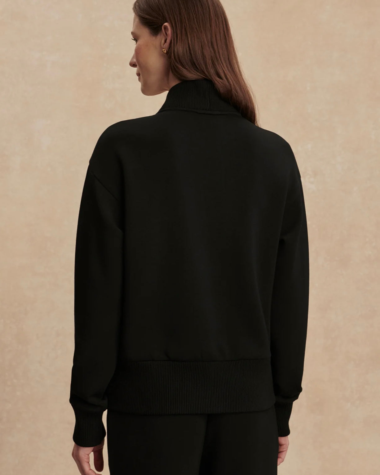 Perfect for everyday layering, the Sally half-zip sweat is a new take on our bestselling Davidson sweat. Crafted from our signature DoubleSoft® fabric, it is accentuated with chunky rib knit detailing on the V-neckline panel, the hemband, and the cuffs. Cut to a regular length, with long sleeves and a dropped shoulder, it is a versatile style for any day.