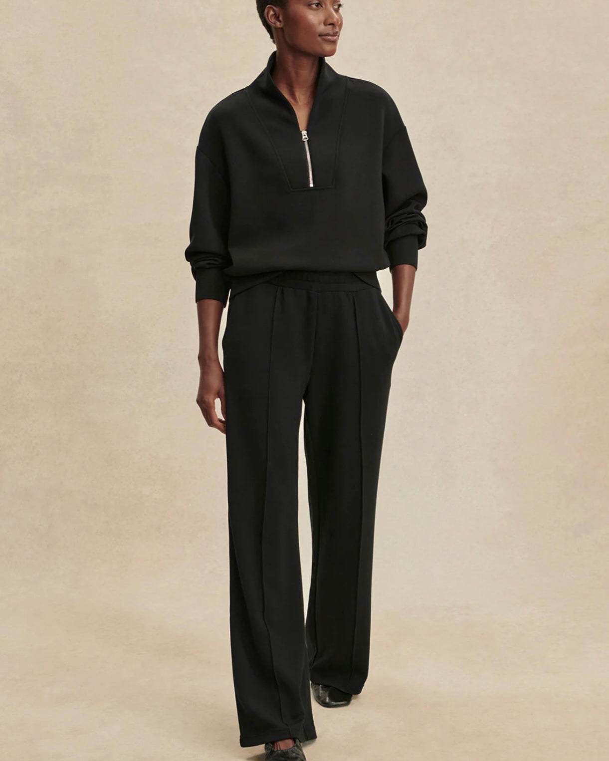 Experience unmatched comfort and style in these DoubleSoft pants. Featuring a high-rise waist, wide-leg silhouette, elasticated waist with internal drawcord, and elegant pintuck detailing, they're a versatile wardrobe essential.