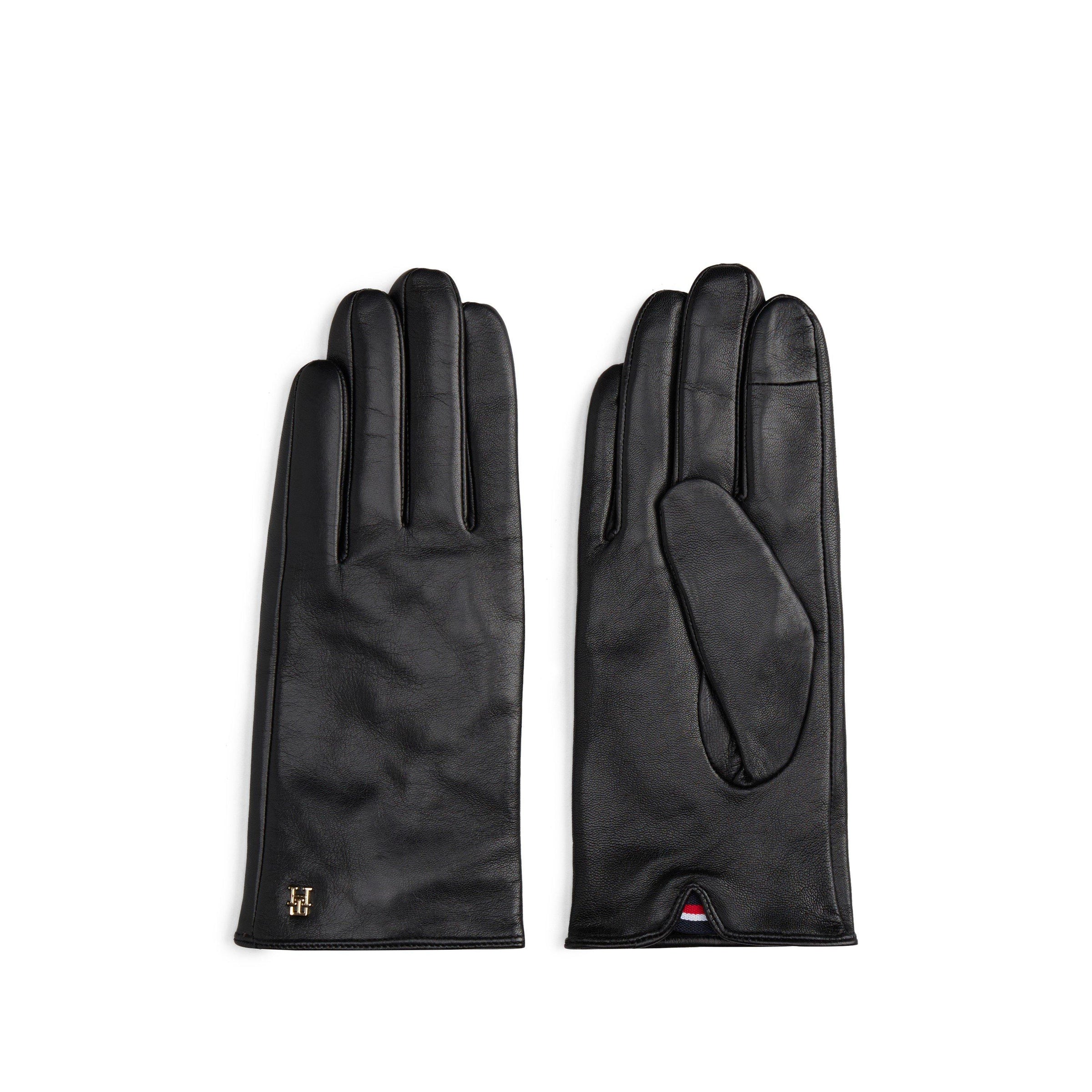 These Tommy Hilfiger leather gloves offer elevated style with a mixed leather and fabric design and luxe gold hardware. Stay warm and fashionable with these expertly crafted gloves.