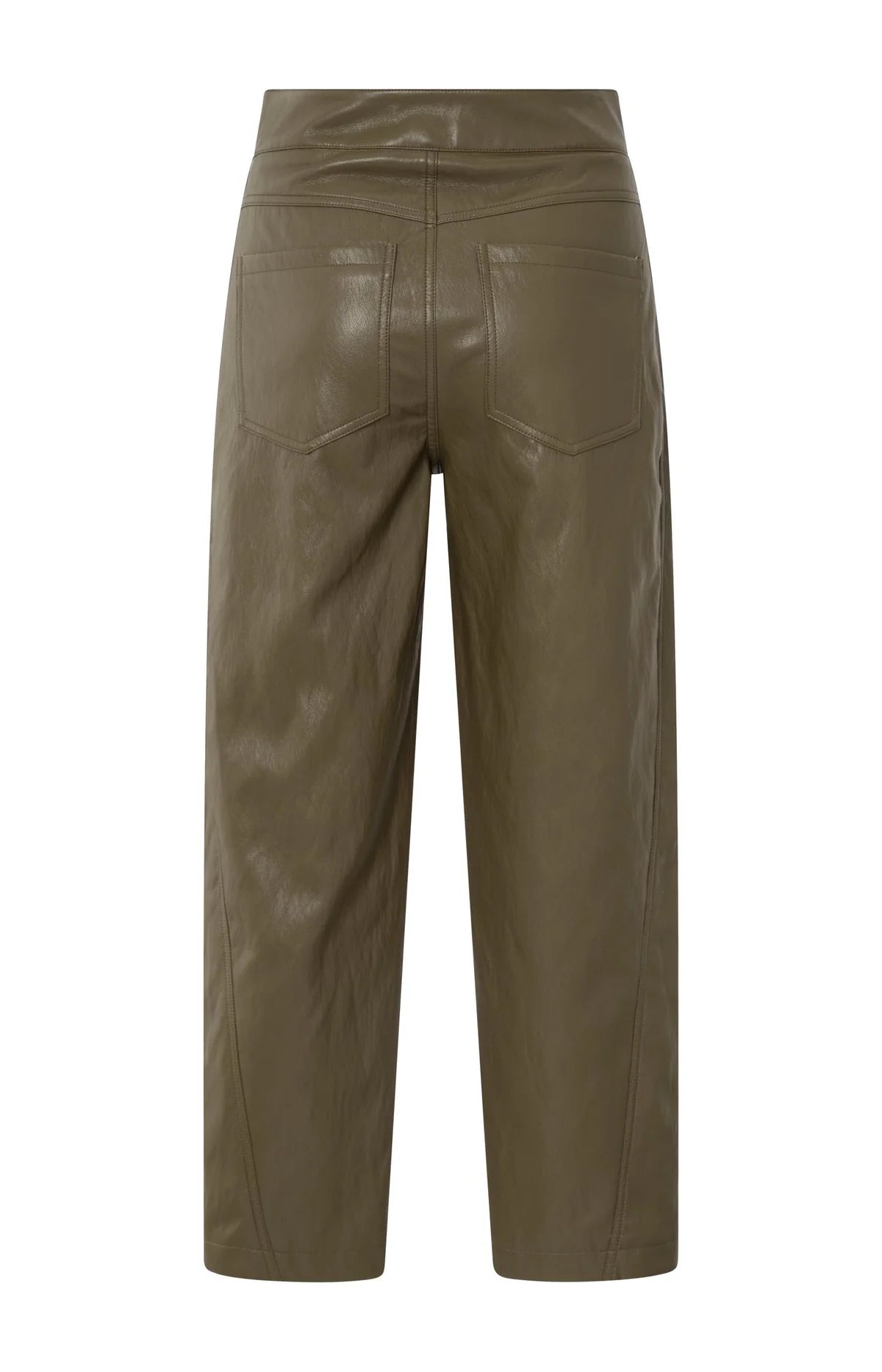 Yaya Faux leather trousers with seam details - Brown/ Green